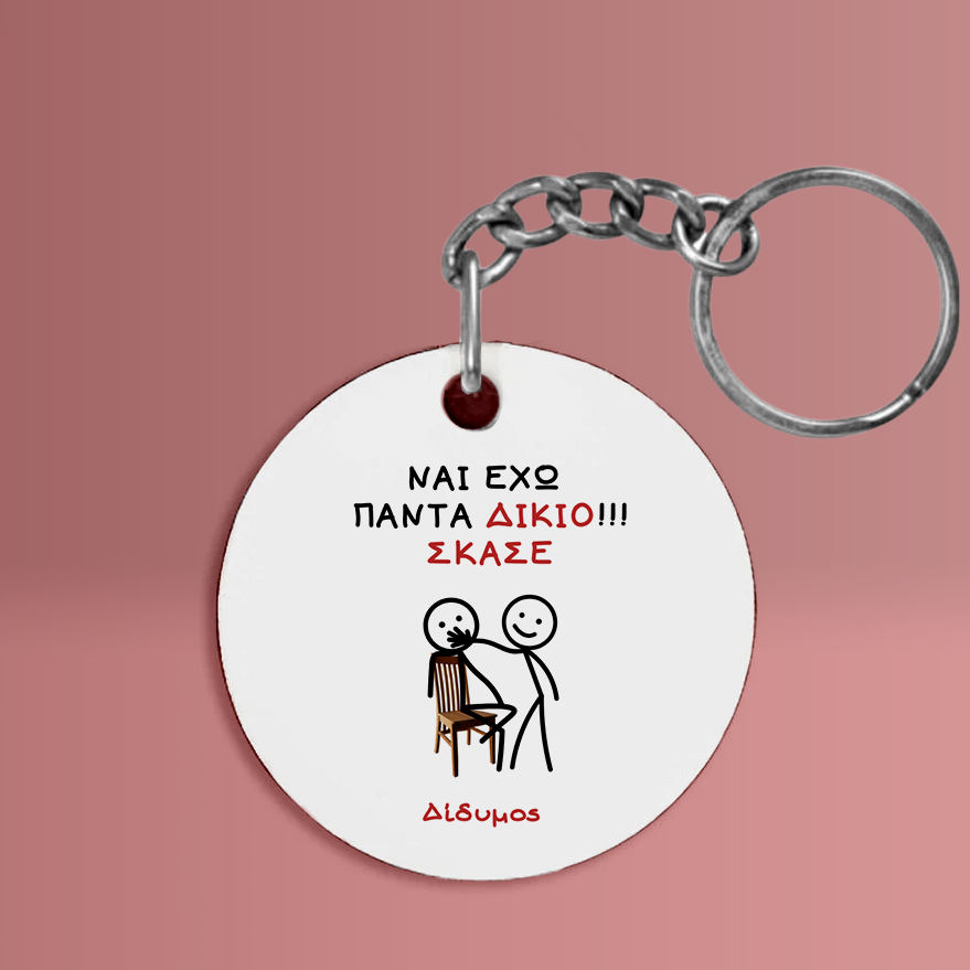 Ιδιαίτερα μπρελόκ με αστείες ατάκες. Στρογγυλό μπρελόκ ξύλινο, με διάμετρο 5cm. Ένα απο τα πολλά πρωτότυπα αστεια μπρελοκ για δώρο.